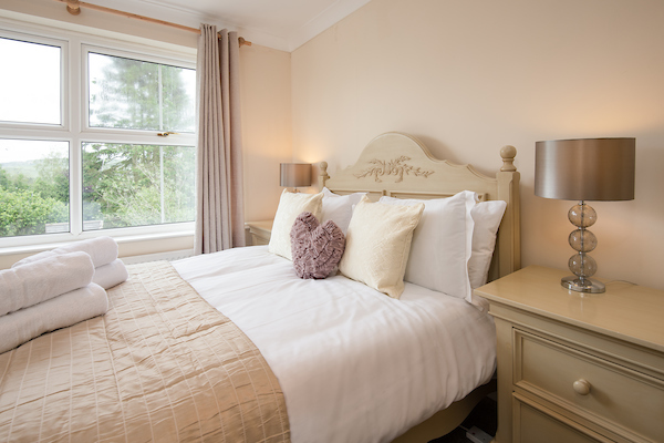 A lovely bedroom with double bed with a luxury mattress and premium quality bedlinen, wardrobe and dressing table.