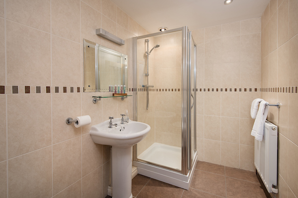 A very spacious bedroom which can be made up with twin full size single beds or a super king bed, wardrobe and dressing table. En-suite with a shower cubicle.
