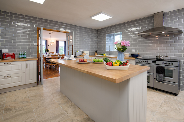 Large and well equipped kitchen with all the usual appliances; large American style fridge freezer, 110cm range cooker, dishwasher and microwave. There is also a utility room with a second dishwasher and a washing machine.